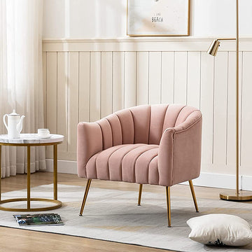 SEYNAR Oversized Glam Velvet Pumpkin Barrel Accent Chair,Modern Upholstered Cream Side Sofa Armchair for Living Room