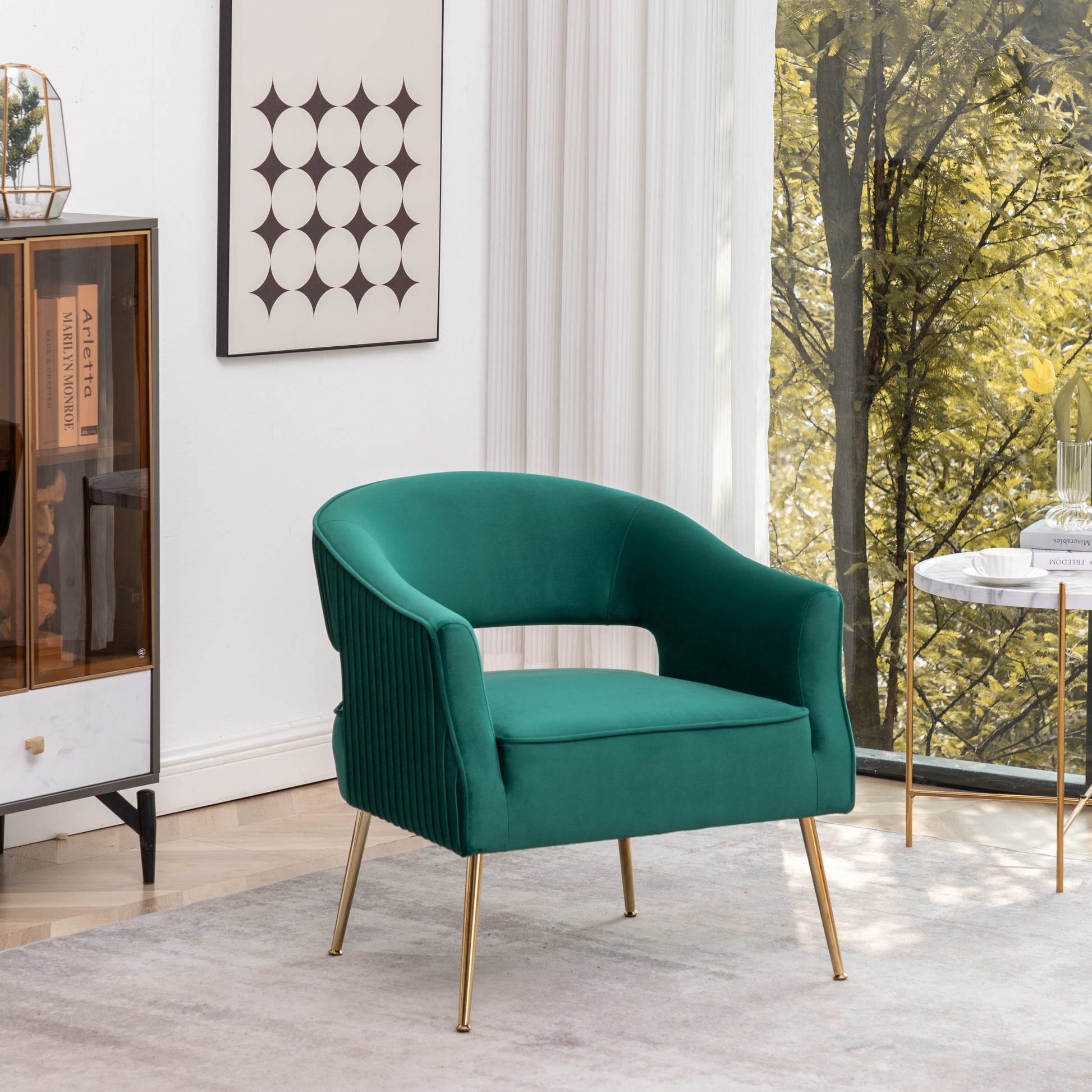 SEYNAR Modern Tufted Velvet Accent Chair with Wingback and Metal Gold Legs for Living Room or Bedroom