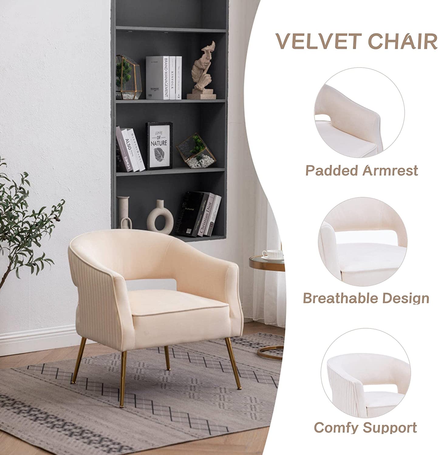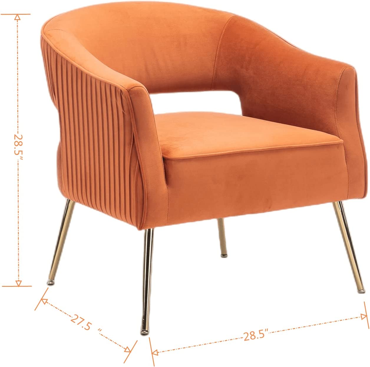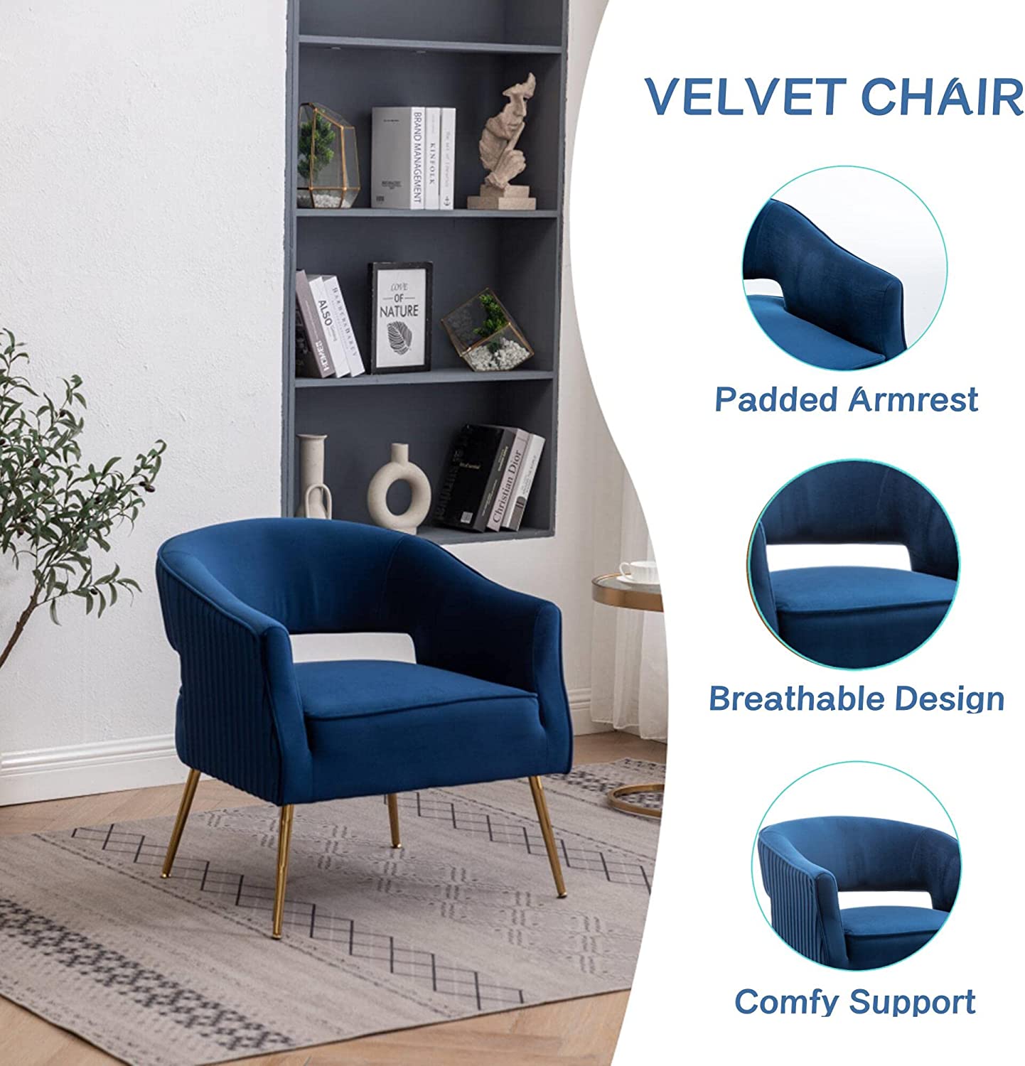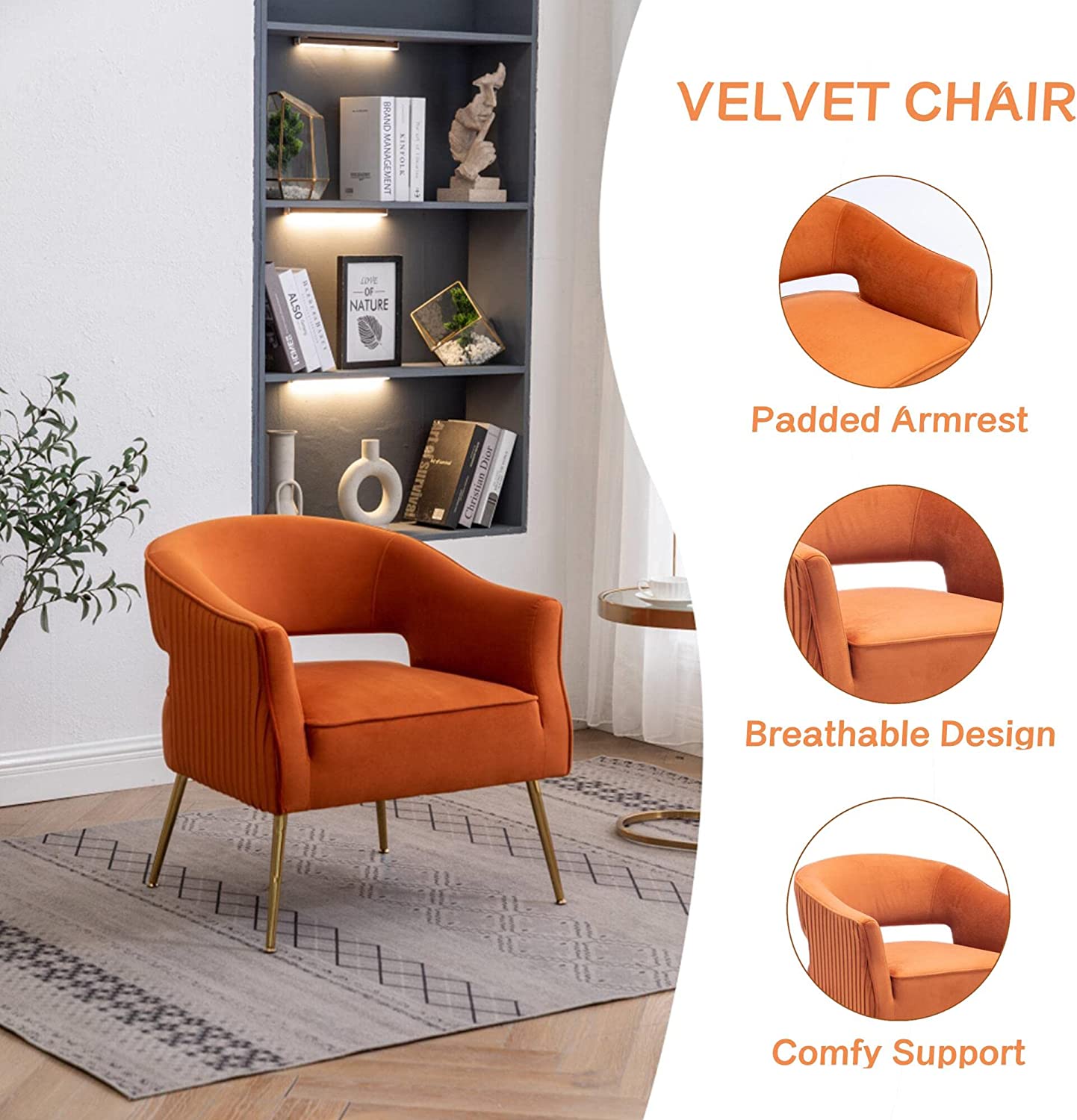 - FLOOR PROTECTION: Each leg is equipped with an anti-slip foot, which makes the accent chair anti-slip and stable, meanwhile protects your floor from scratching and reduces the noise when moving. MULTIPLE USE:The velvet chair has a perfect shape to fit in any environment in your house. It can be used in the dining room, kitchen, living room, bedroom, lounge, as a tea/reading corner chair or as a vanity chair. EASY to SET UP: We will provide you illustrated instructions and numbered parts. Just cross the metal frames and screw them on the seat bottom.