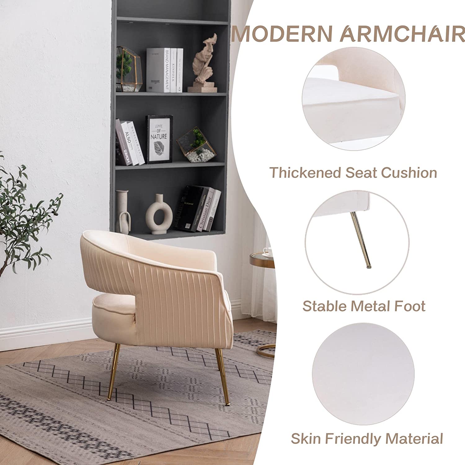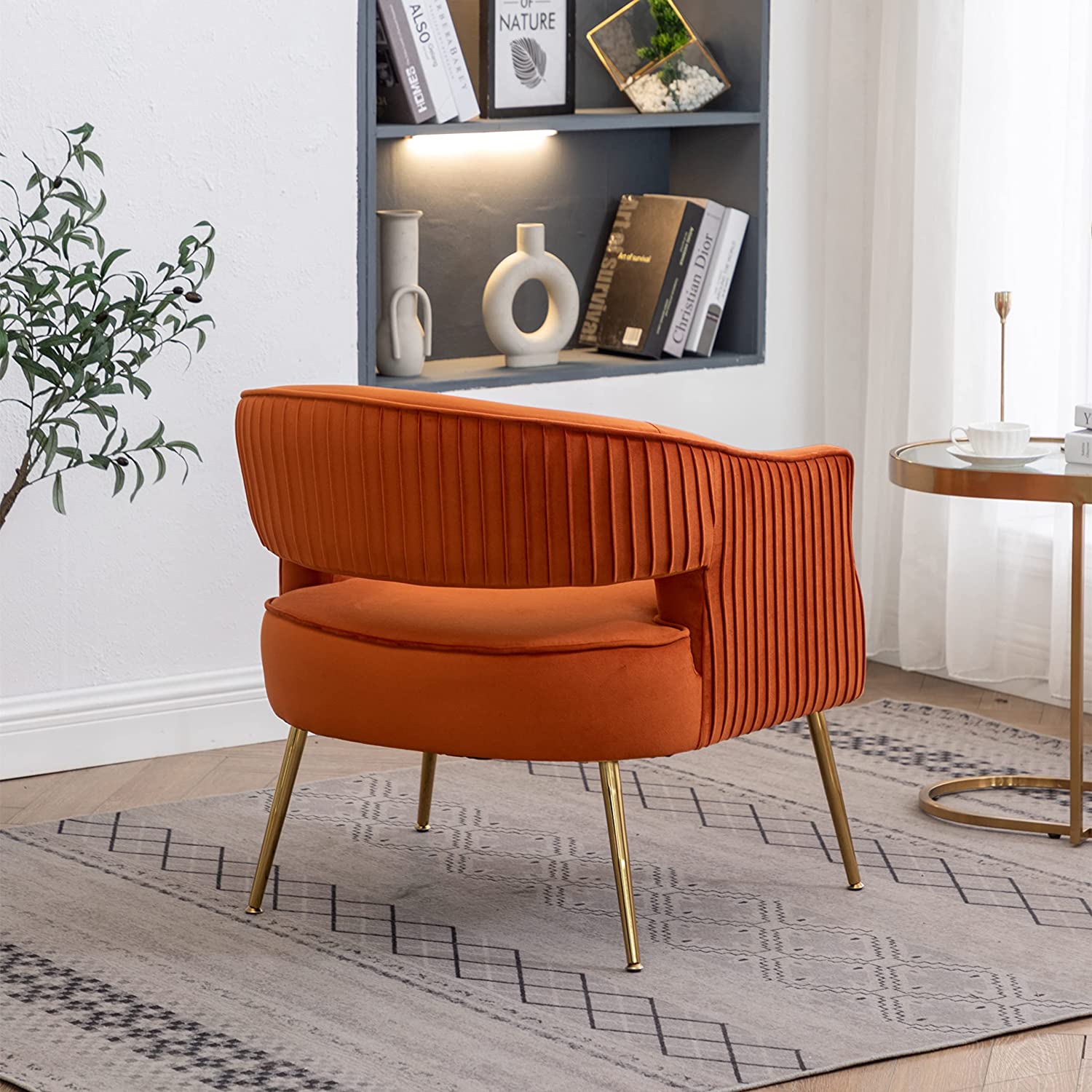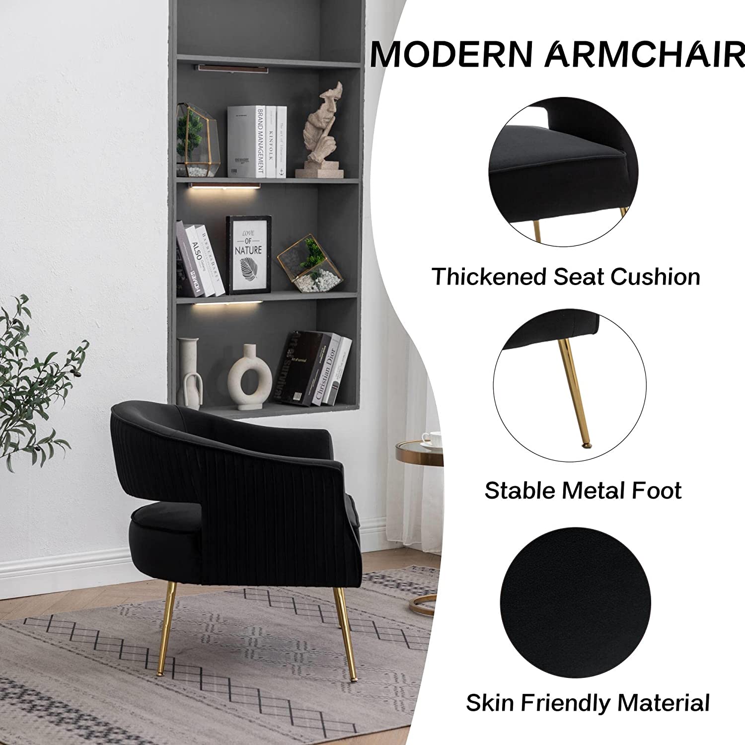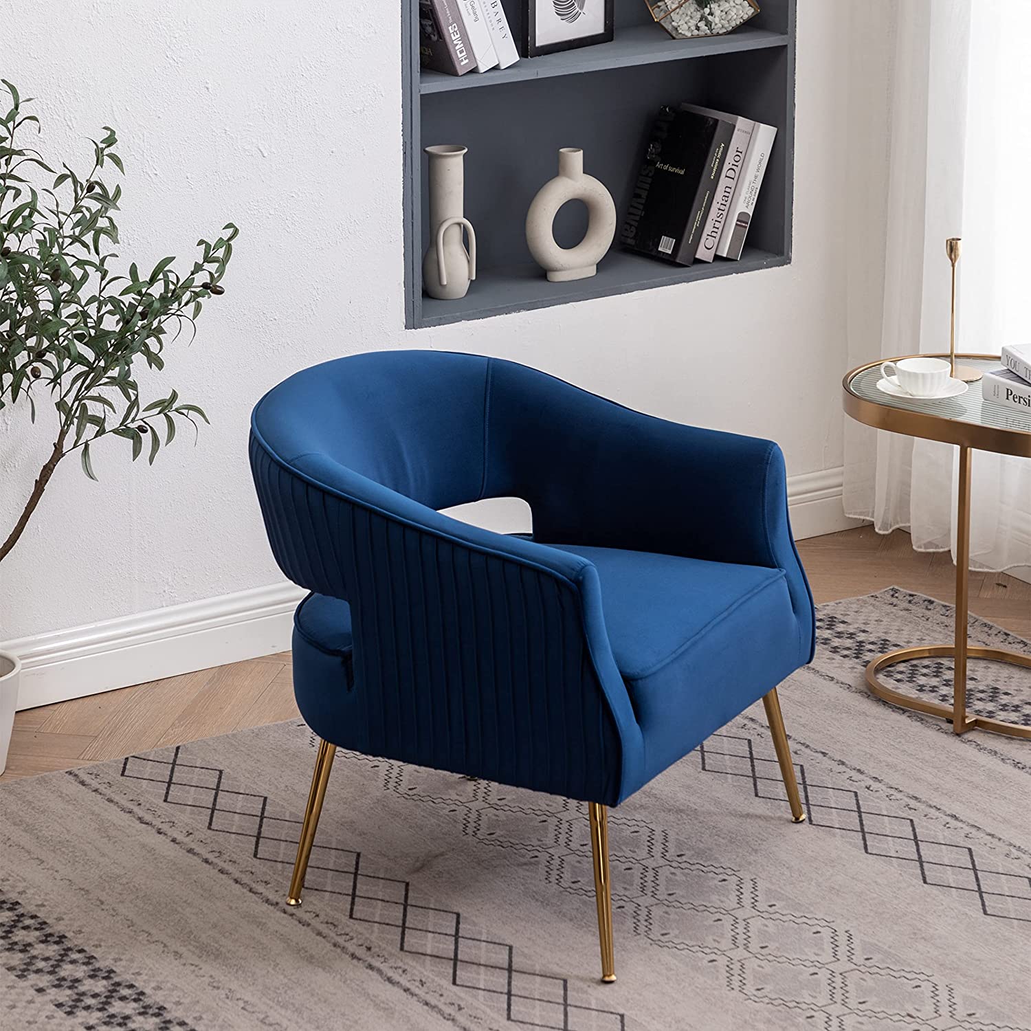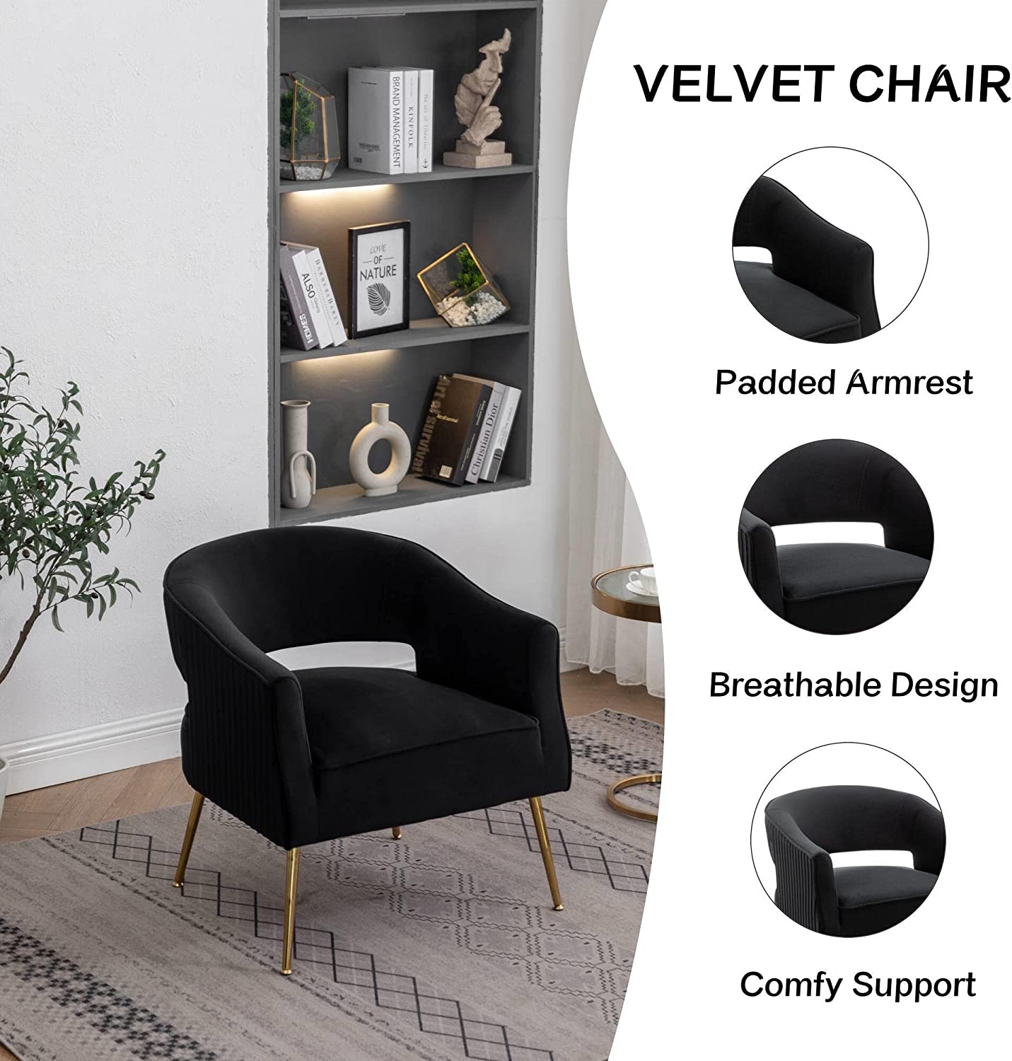 - FLOOR PROTECTION: Each leg is equipped with an anti-slip foot, which makes the accent chair anti-slip and stable, meanwhile protects your floor from scratching and reduces the noise when moving. MULTIPLE USE:The velvet chair has a perfect shape to fit in any environment in your house. It can be used in the dining room, kitchen, living room, bedroom, lounge, as a tea/reading corner chair or as a vanity chair. EASY to SET UP: We will provide you illustrated instructions and numbered parts. Just cross the metal frames and screw them on the seat bottom.