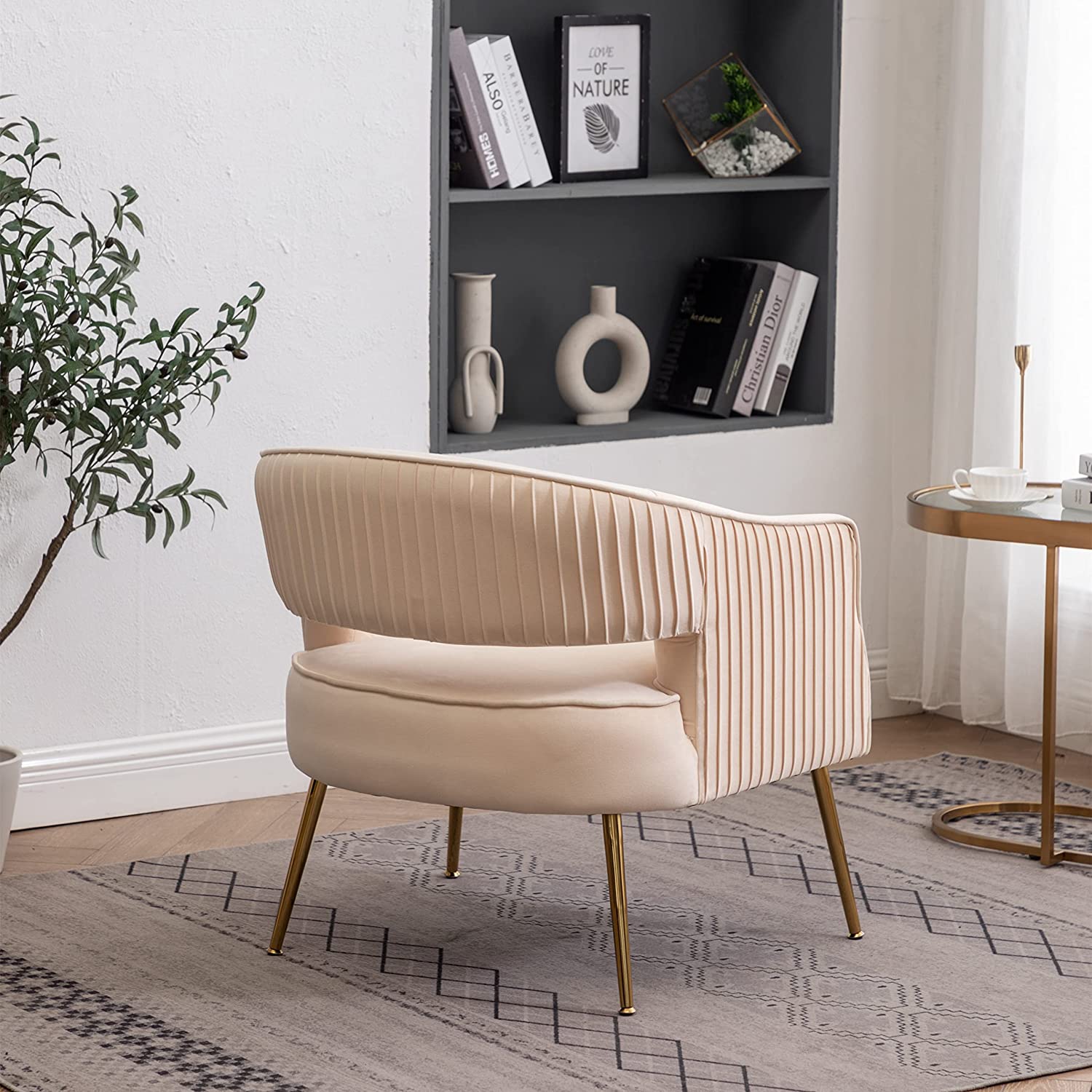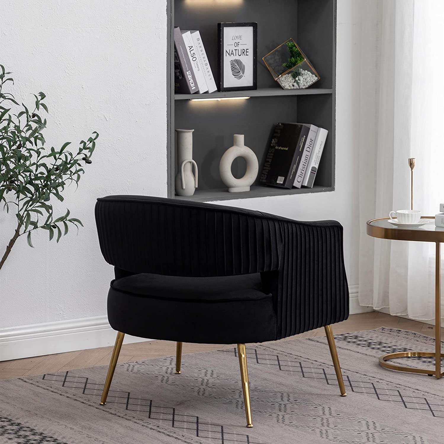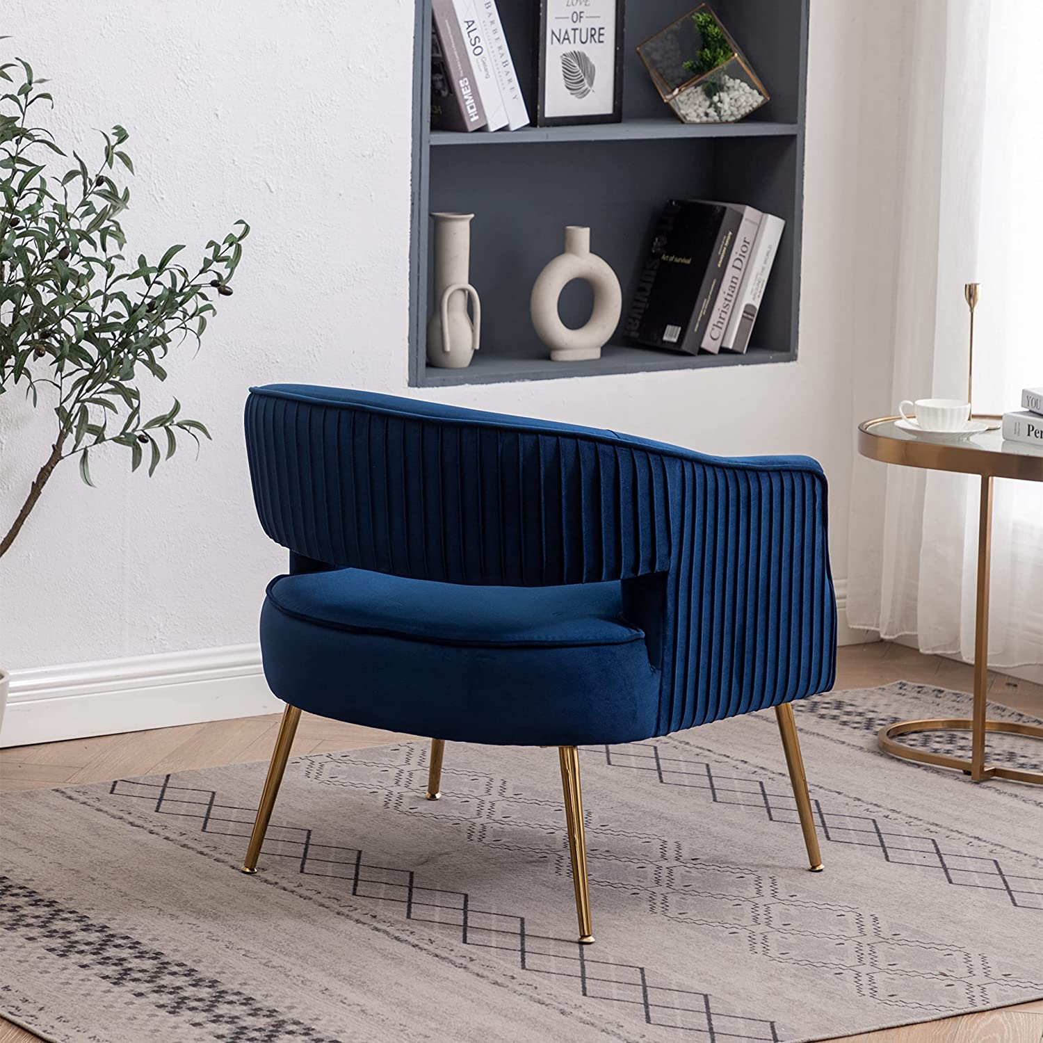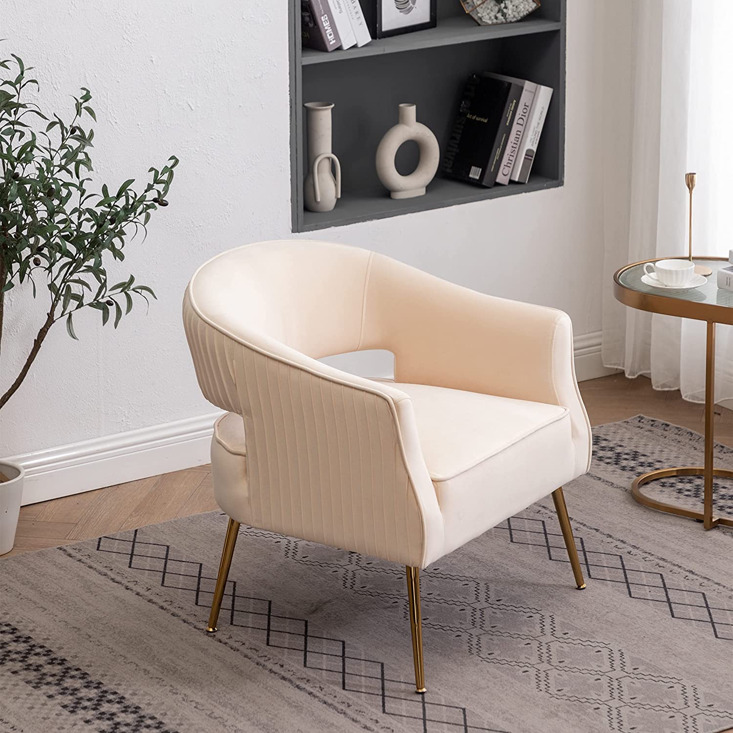 - FLOOR PROTECTION: Each leg is equipped with an anti-slip foot, which makes the accent chair anti-slip and stable, meanwhile protects your floor from scratching and reduces the noise when moving. MULTIPLE USE:The velvet chair has a perfect shape to fit in any environment in your house. It can be used in the dining room, kitchen, living room, bedroom, lounge, as a tea/reading corner chair or as a vanity chair. EASY to SET UP: We will provide you illustrated instructions and numbered parts. Just cross the metal frames and screw them on the seat bottom.